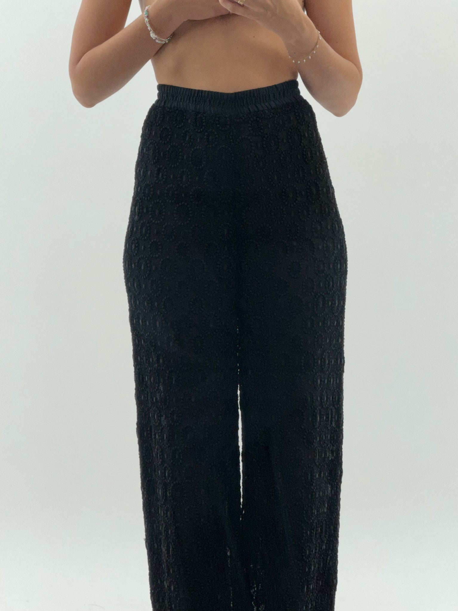 Vintage x Made in Canada x Black Lace High-waist Tall Pant (S, M)