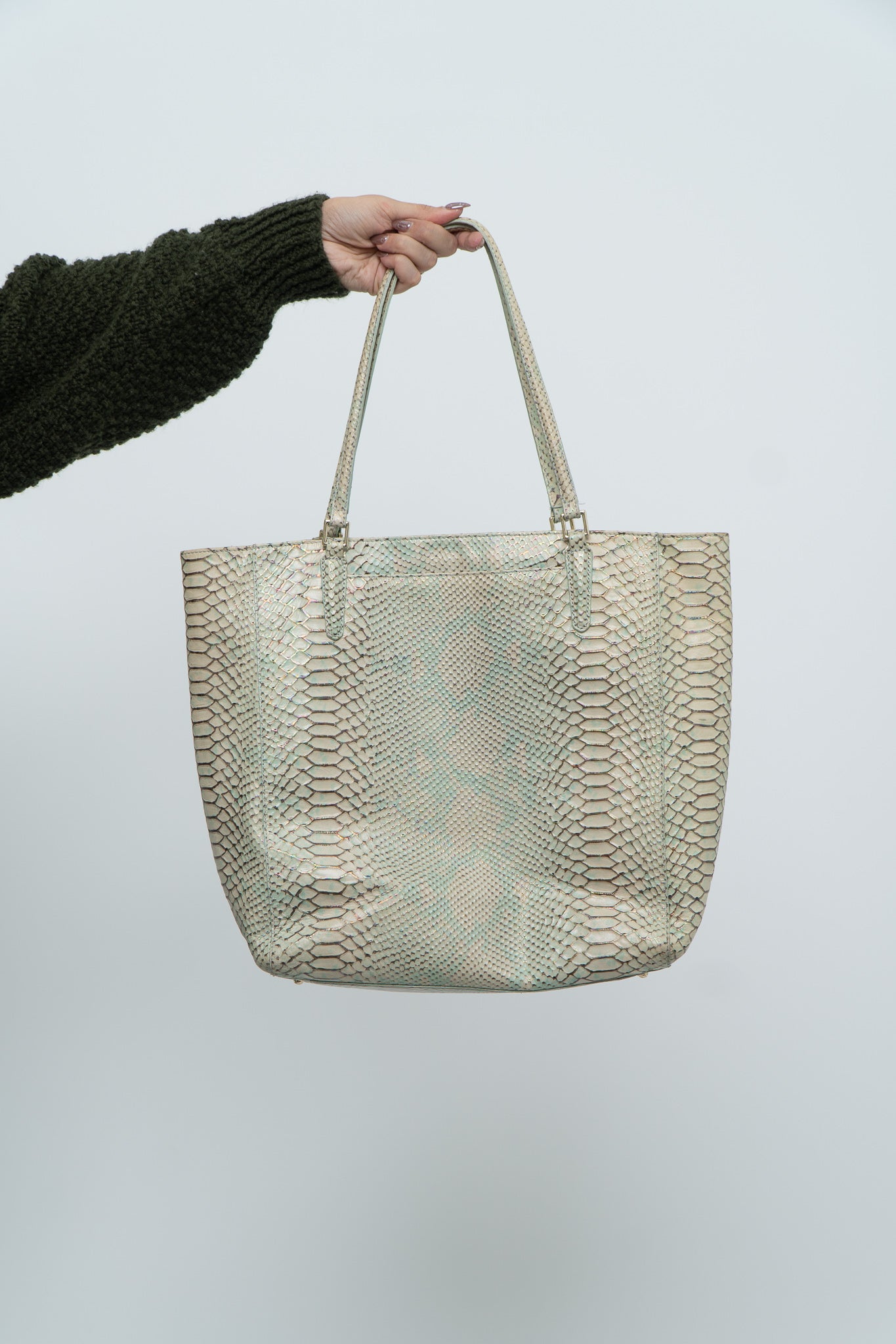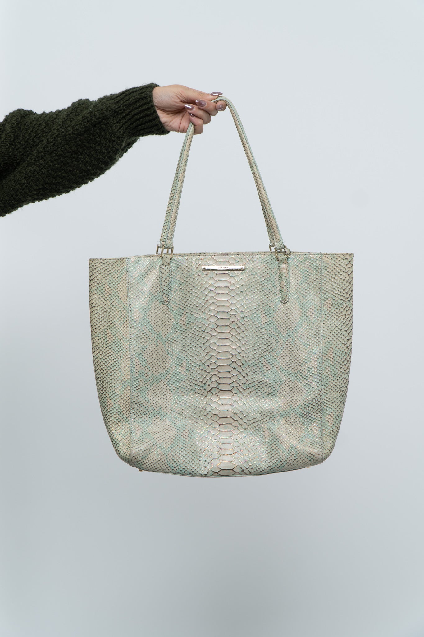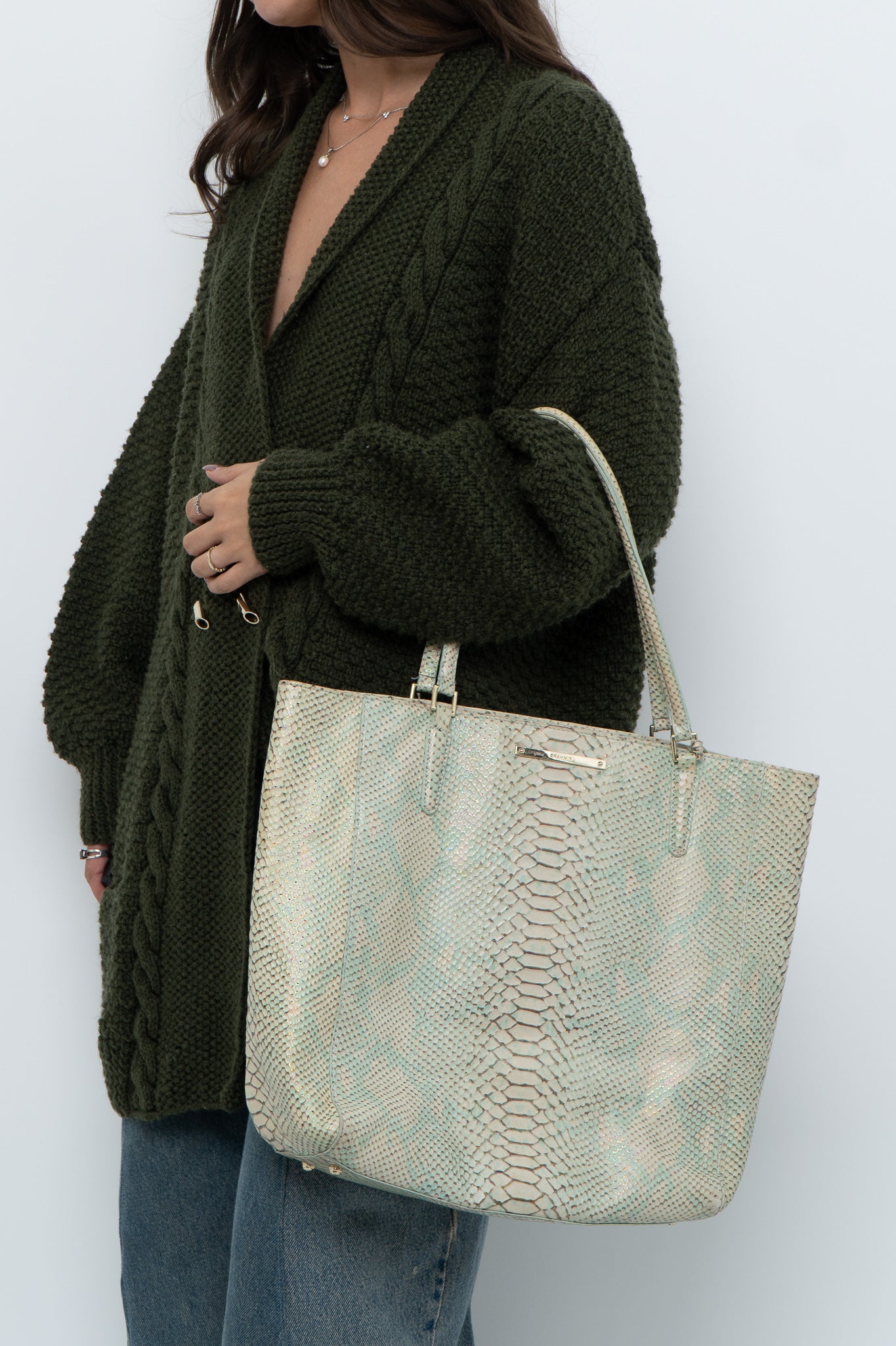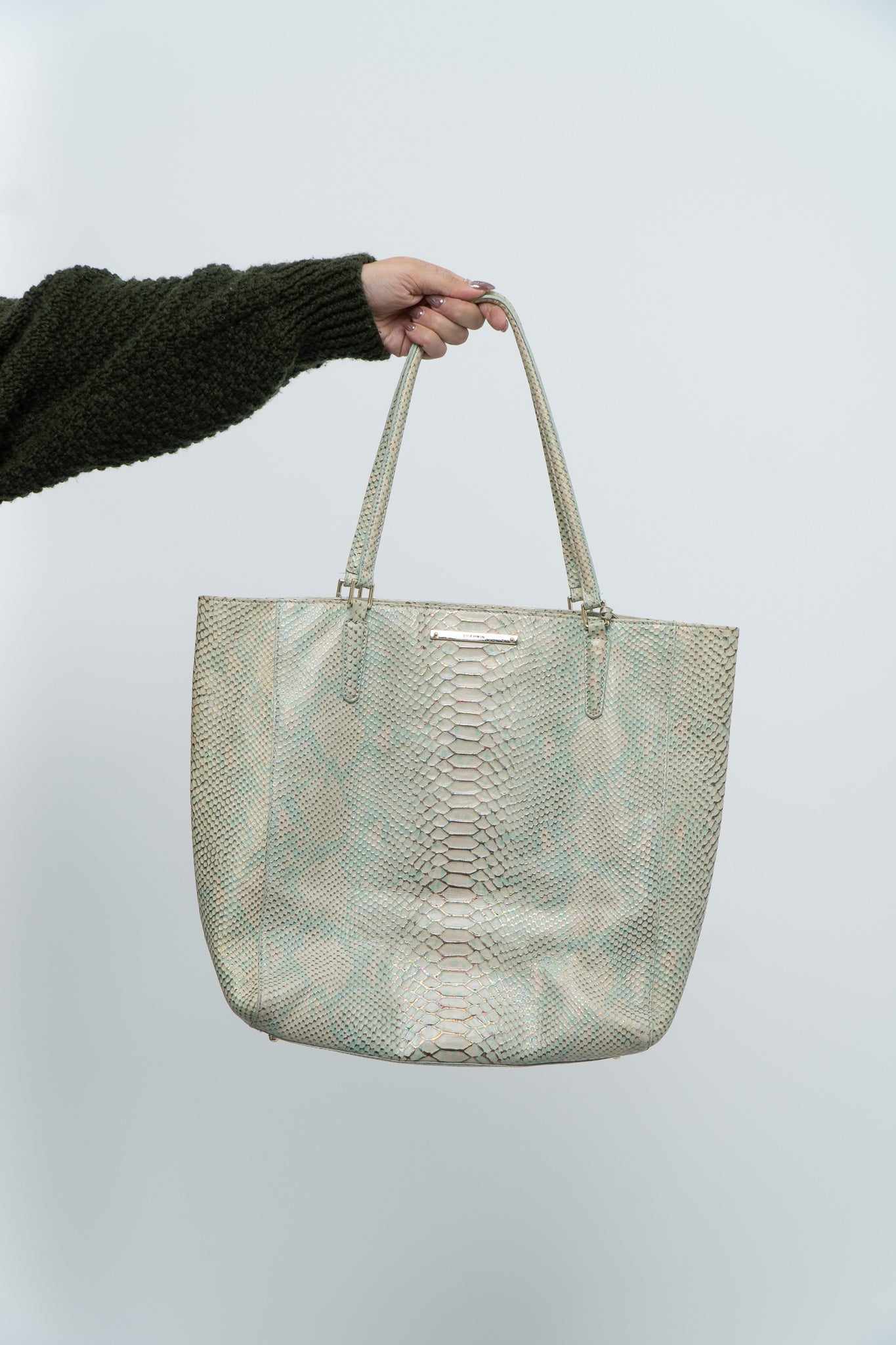 BRAHMIN x Teal, Cream Irridescent Leather Tote