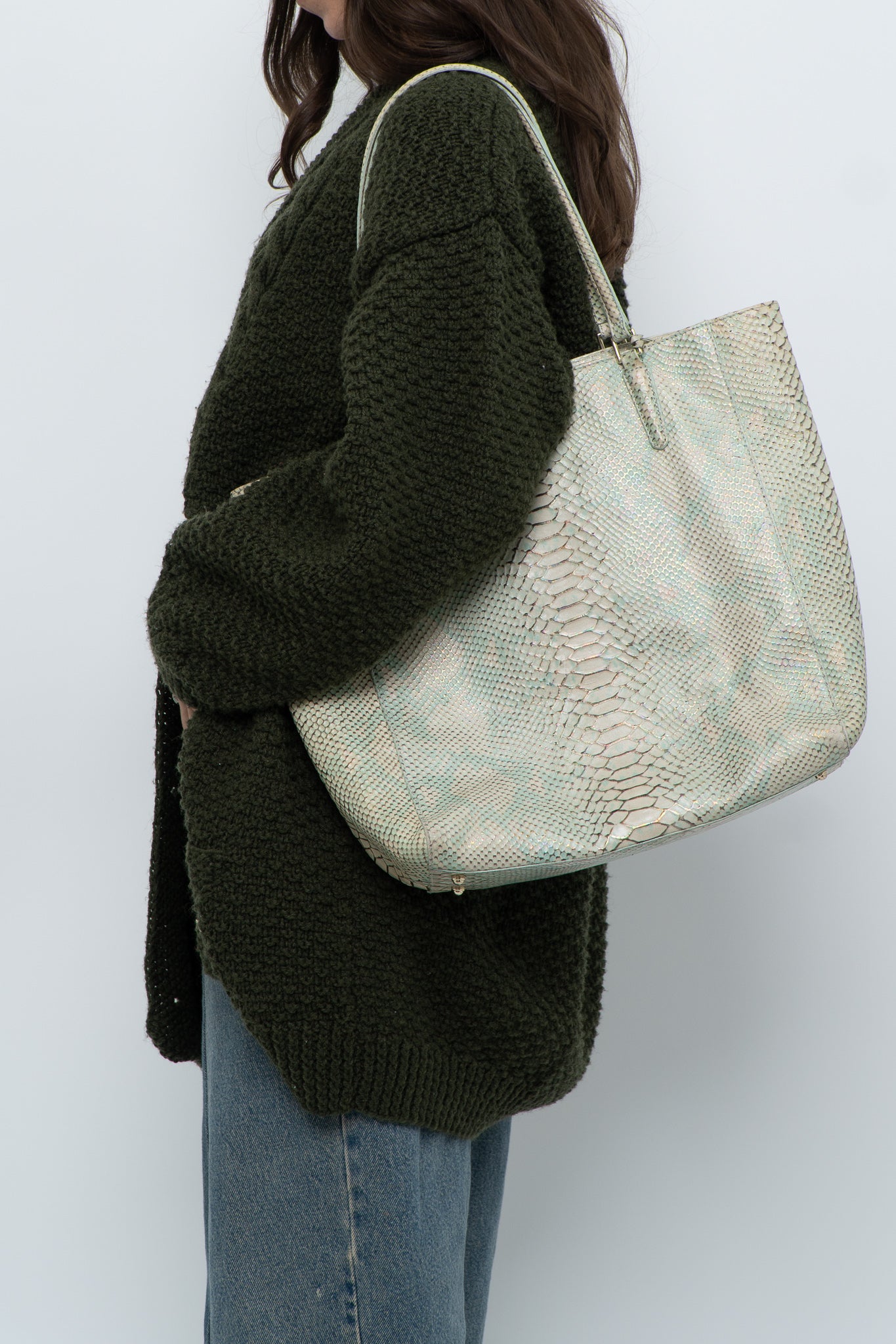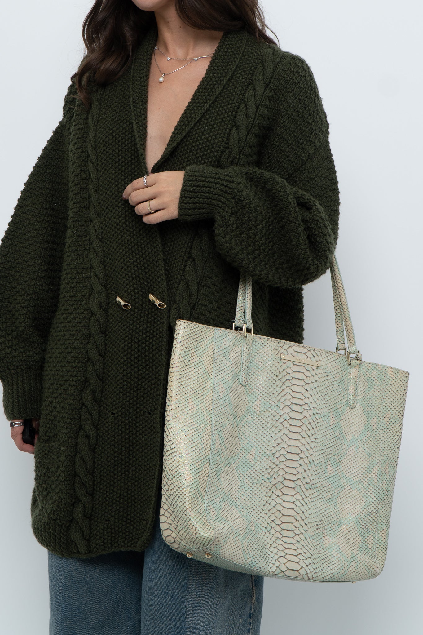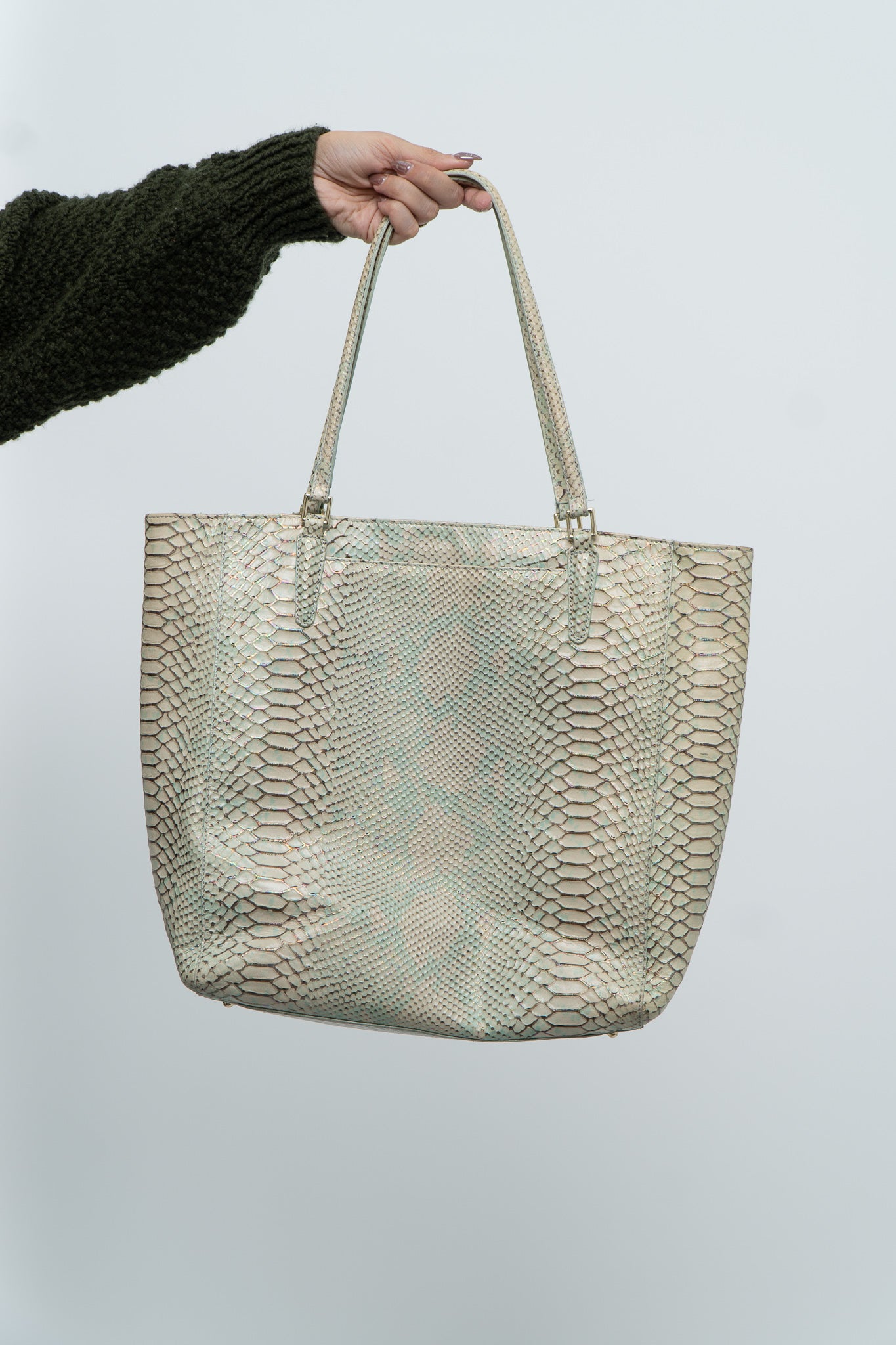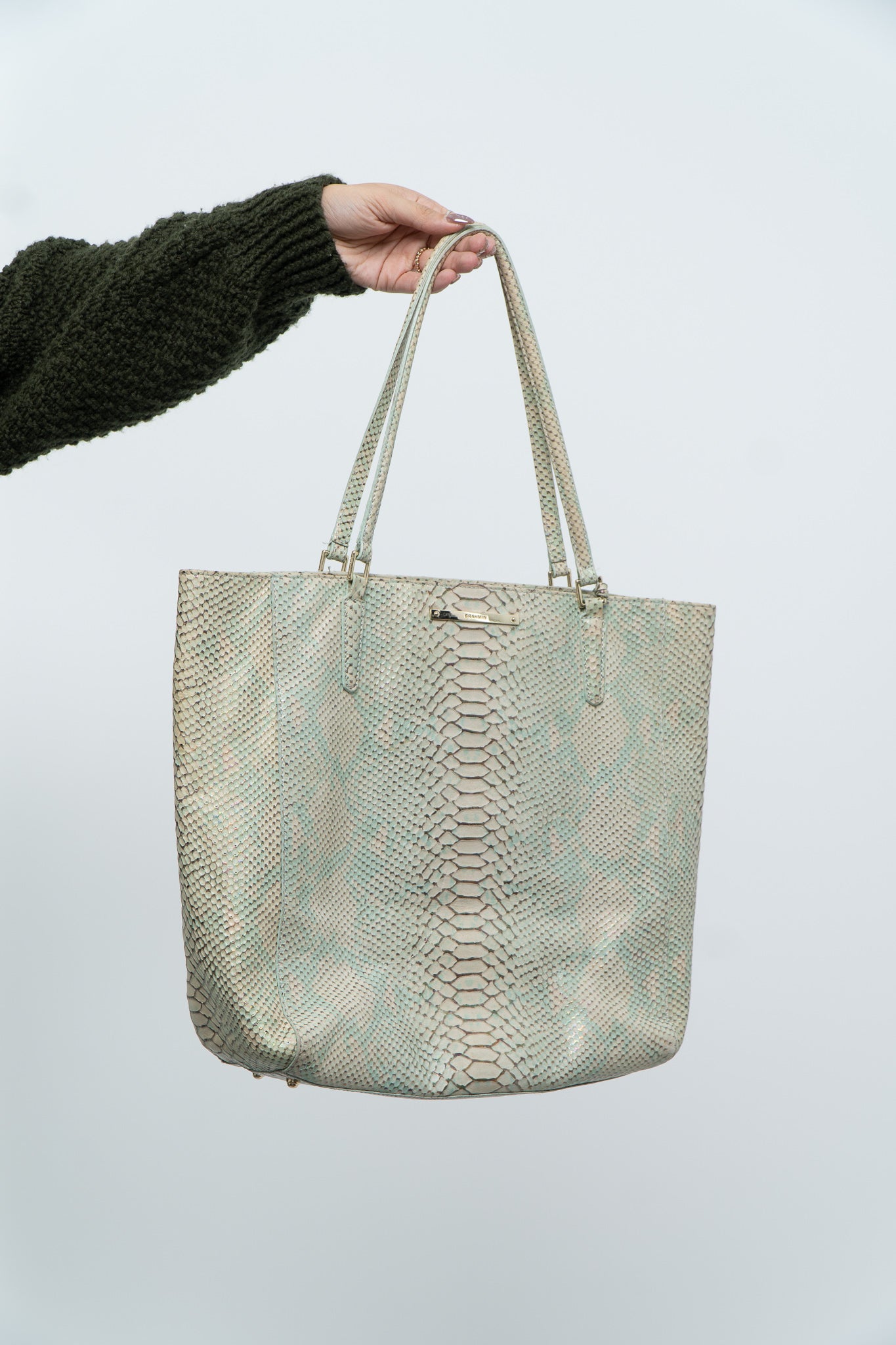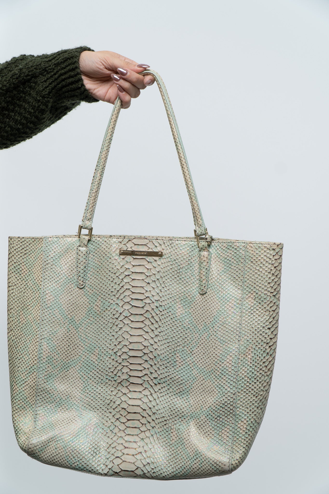 BRAHMIN x Teal, Cream Irridescent Leather Tote