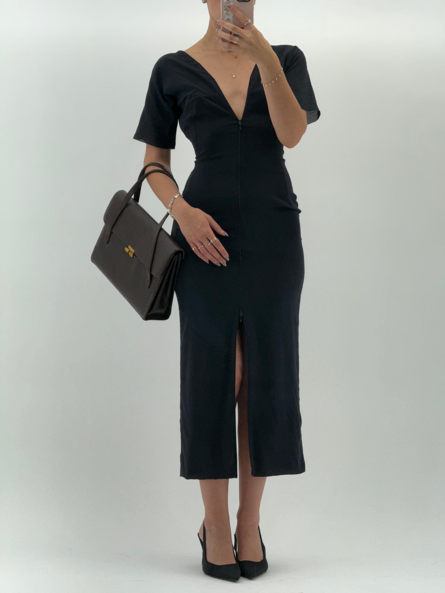 Vintage x DOLCE & GABBANA Black Silk Double-zip Maxi Dress (XS, S)