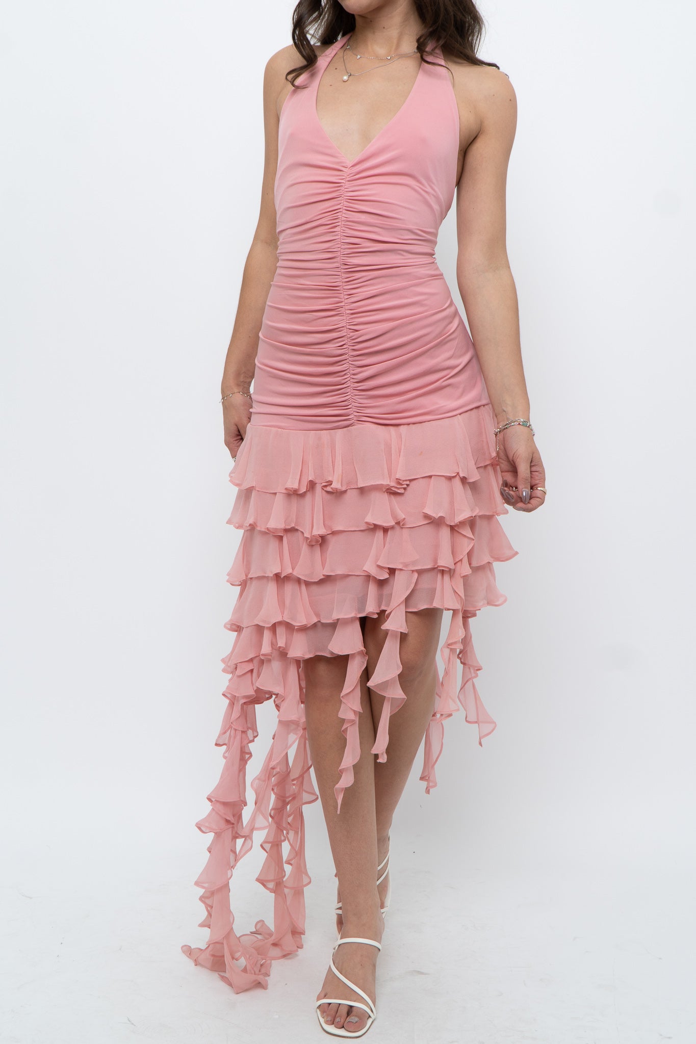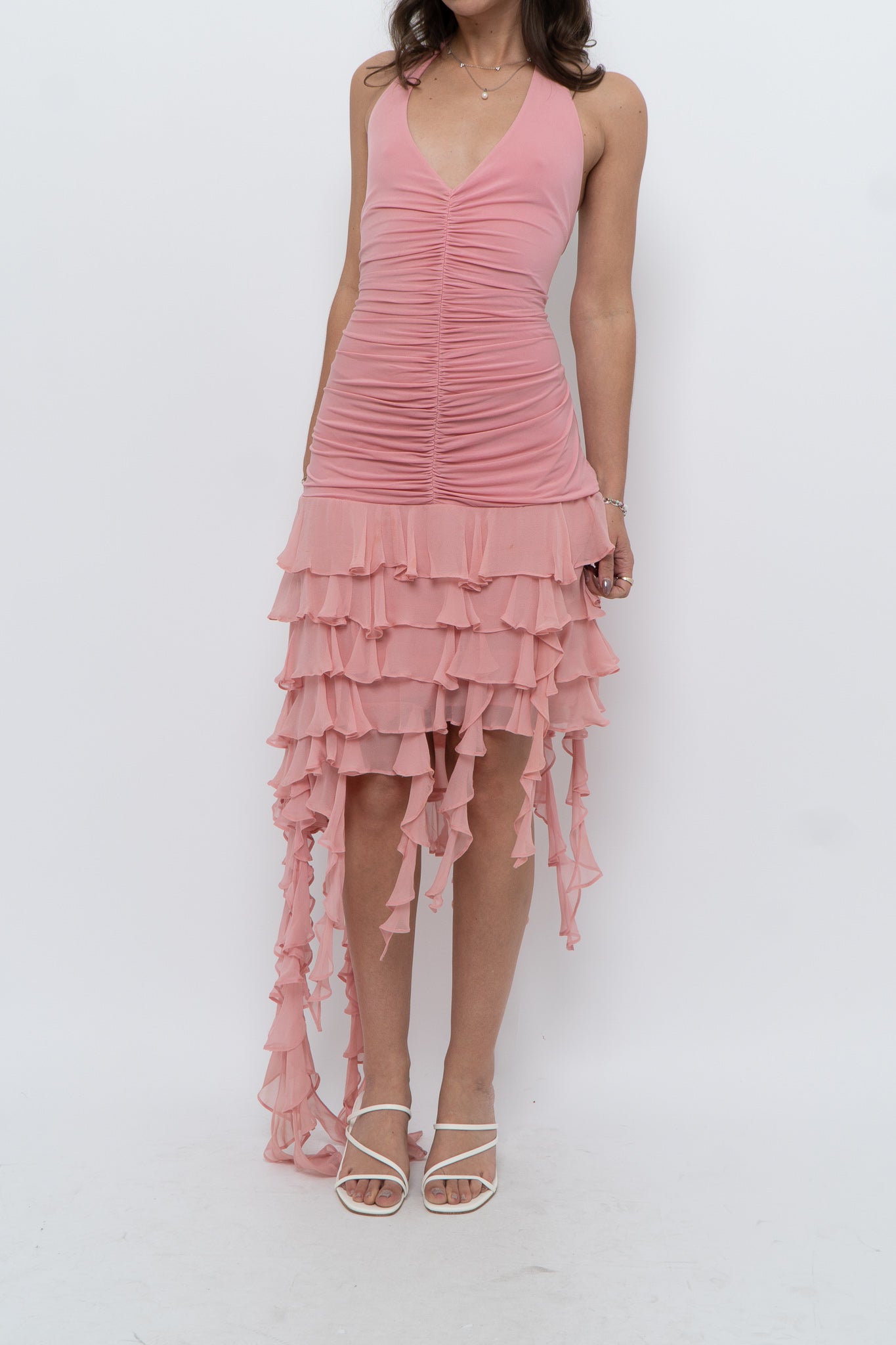 Vintage x BCBG Blush Pink Silk Frilly Midi Dress (M, L)