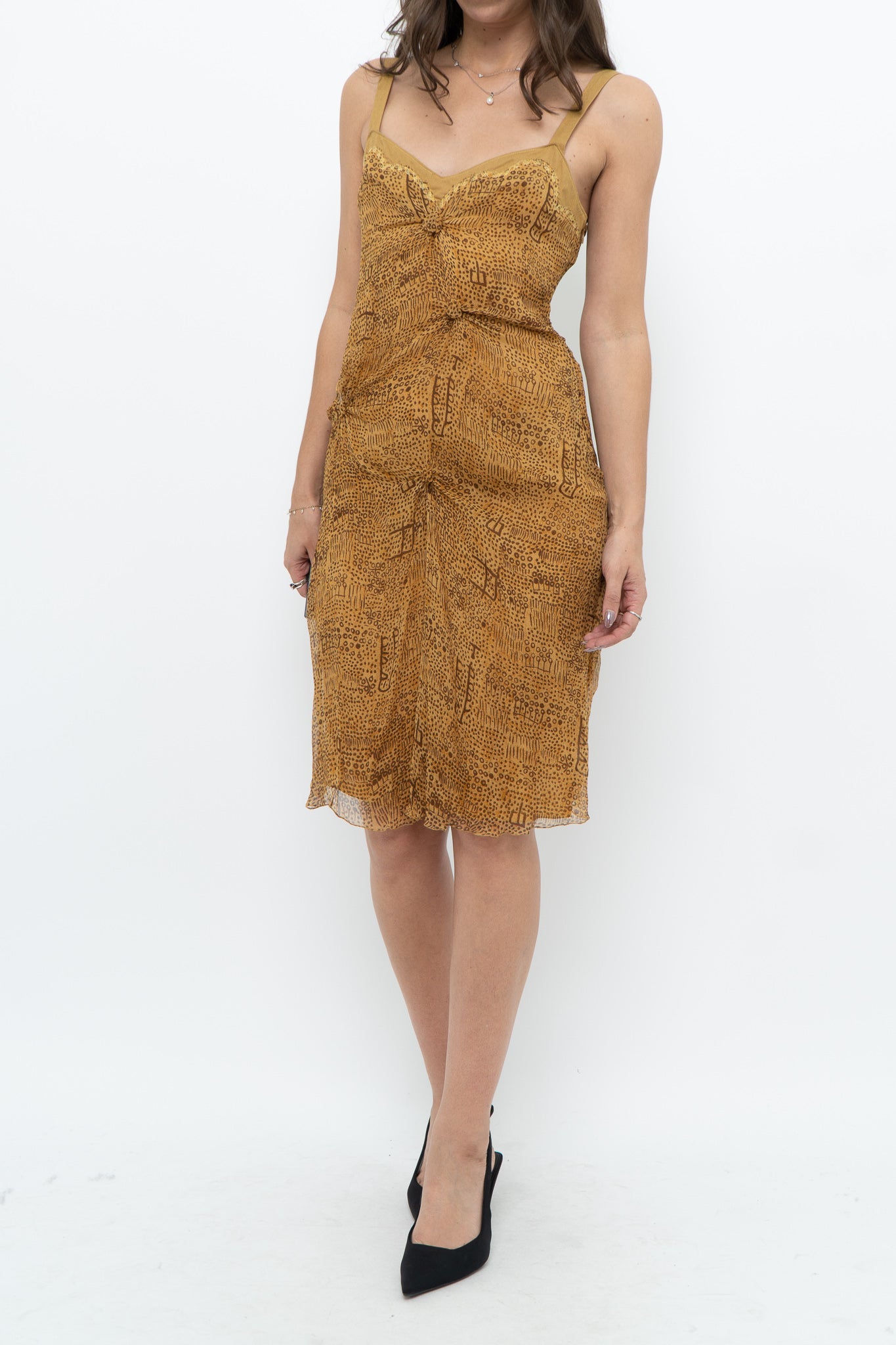 Condition: 10/10 / Italy / No Fabric Tag / No Marked Size, suits XS, S / Pit to pit: 16” Length: 40” / Silk, lined with different fabric