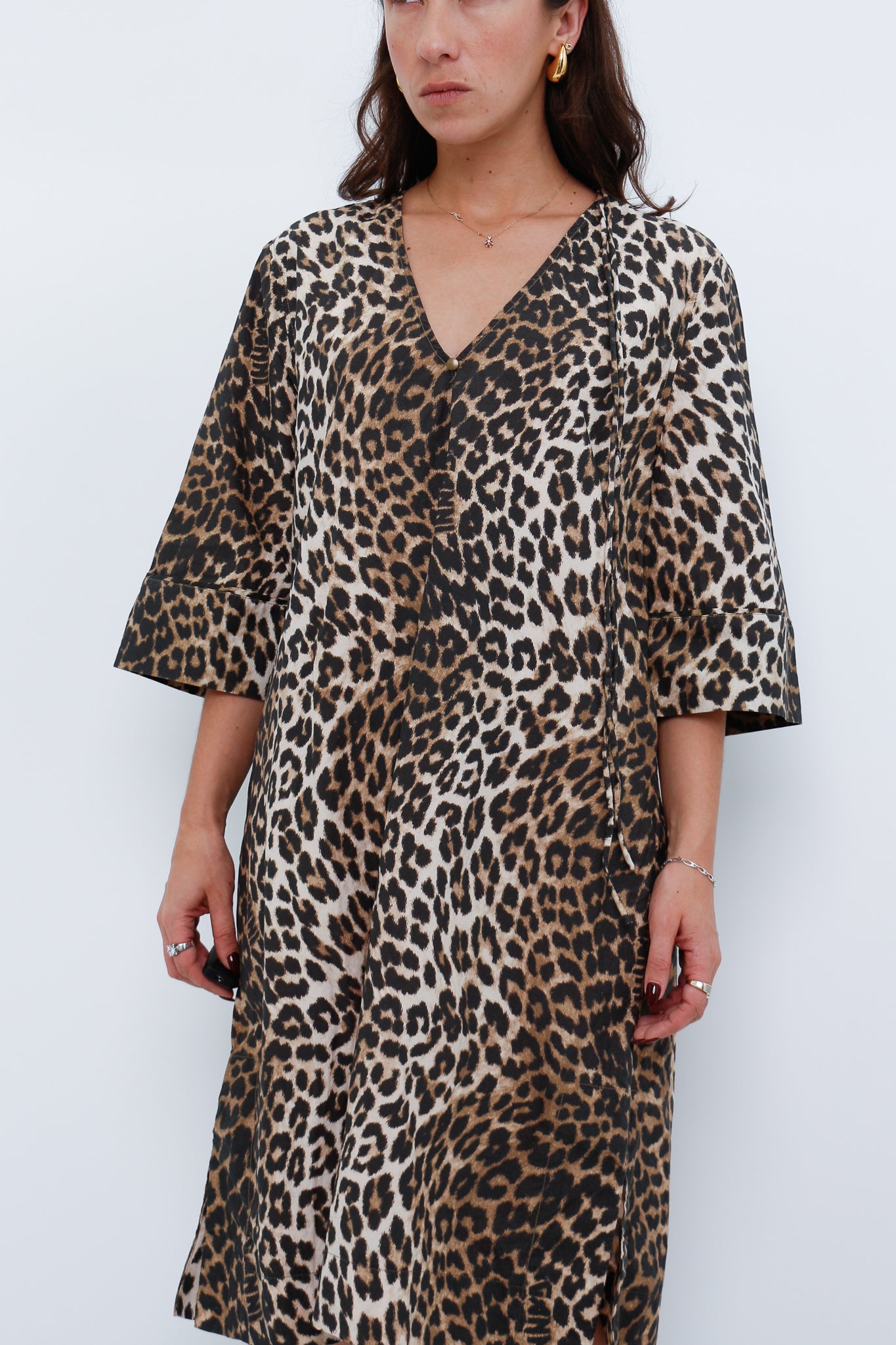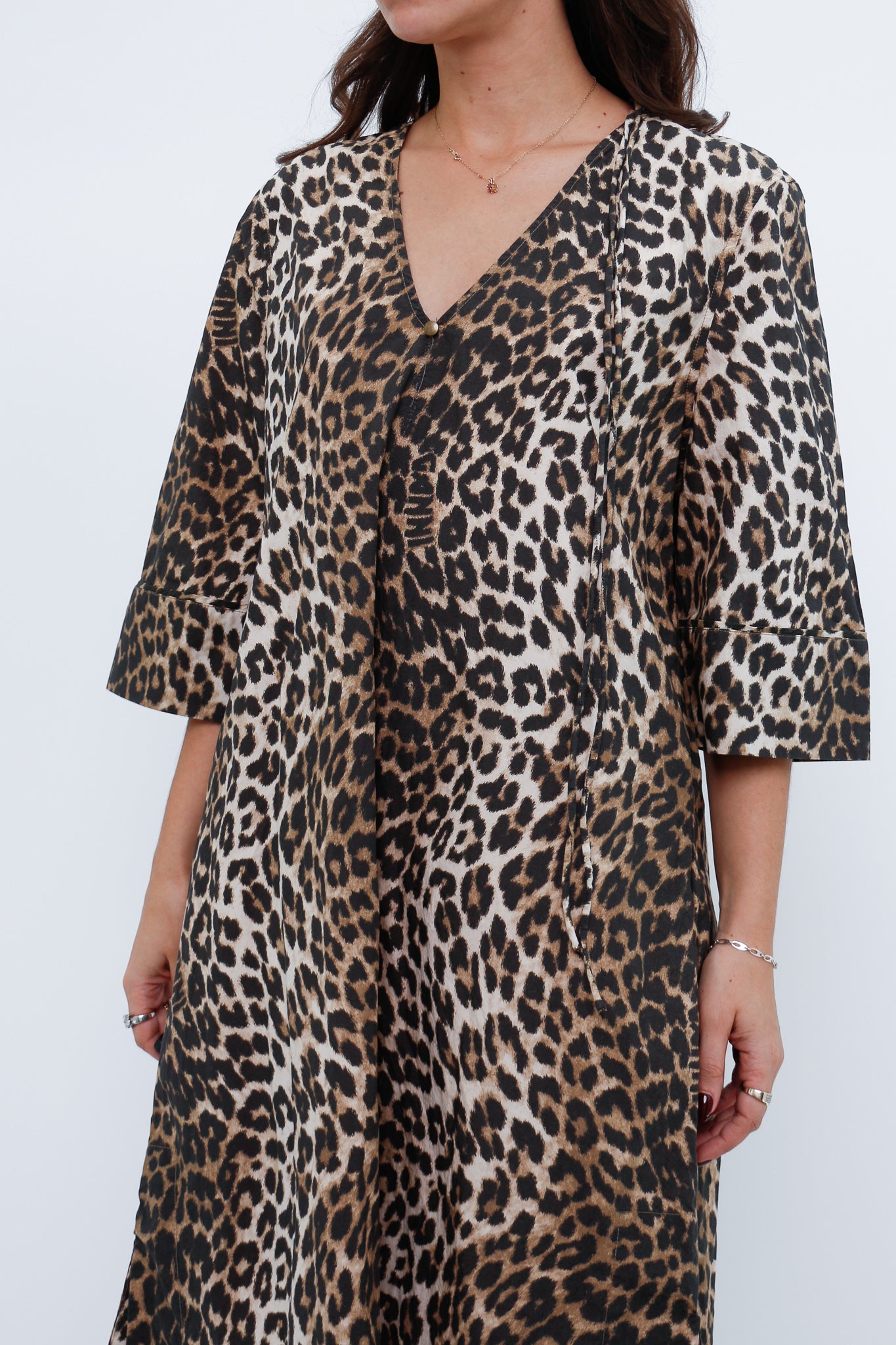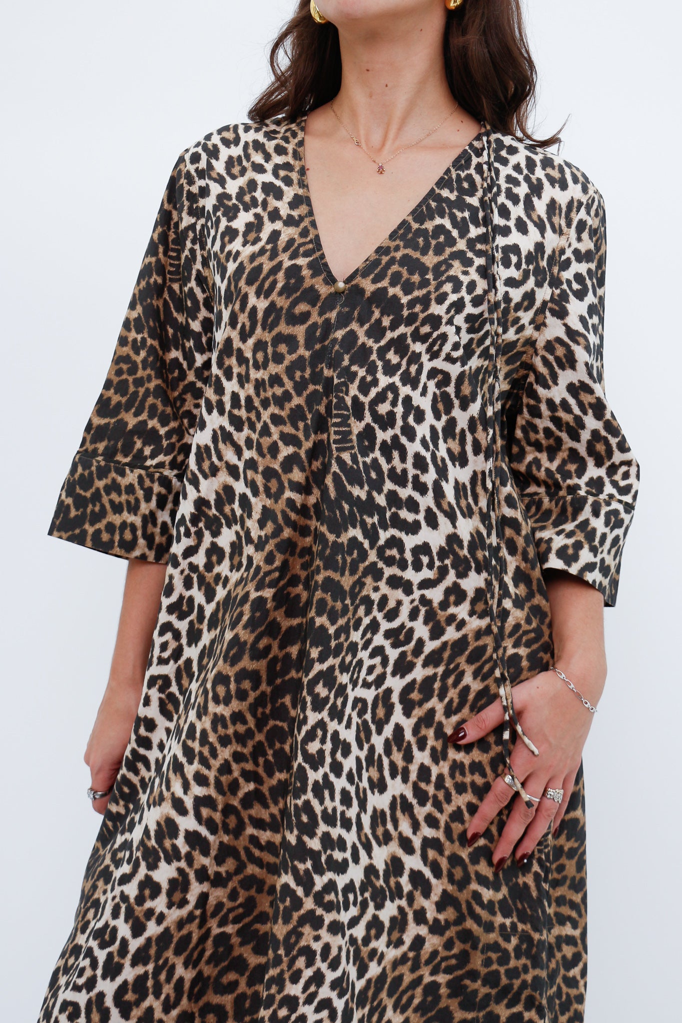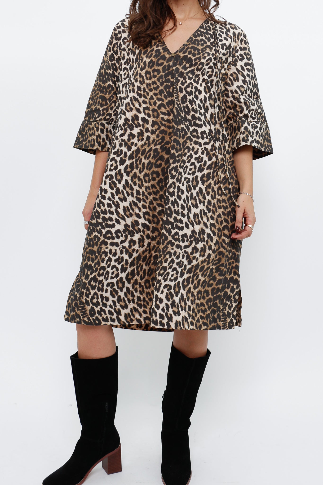 GANNI x Leopard Cotton Print Midi Dress (S, M)