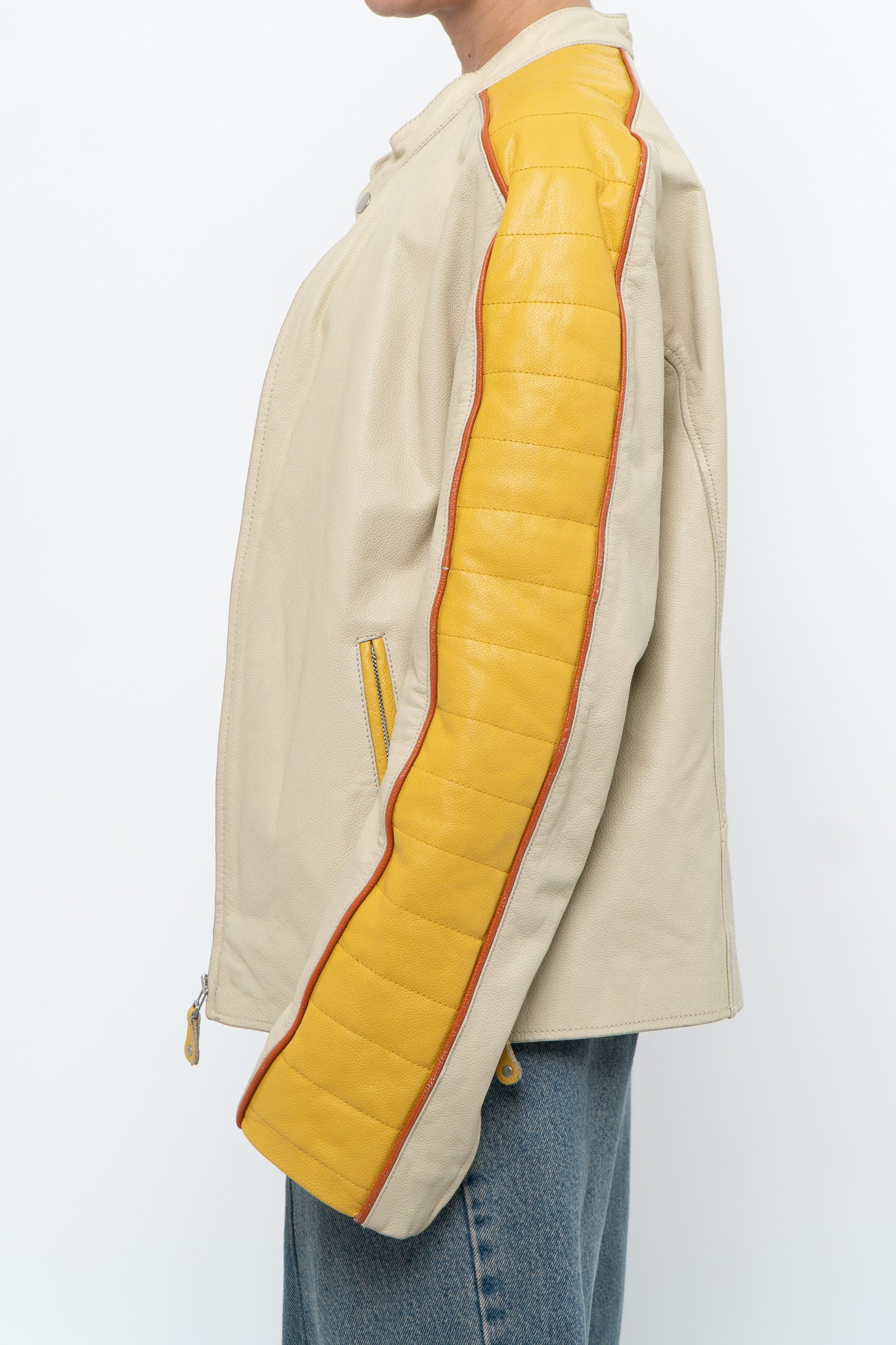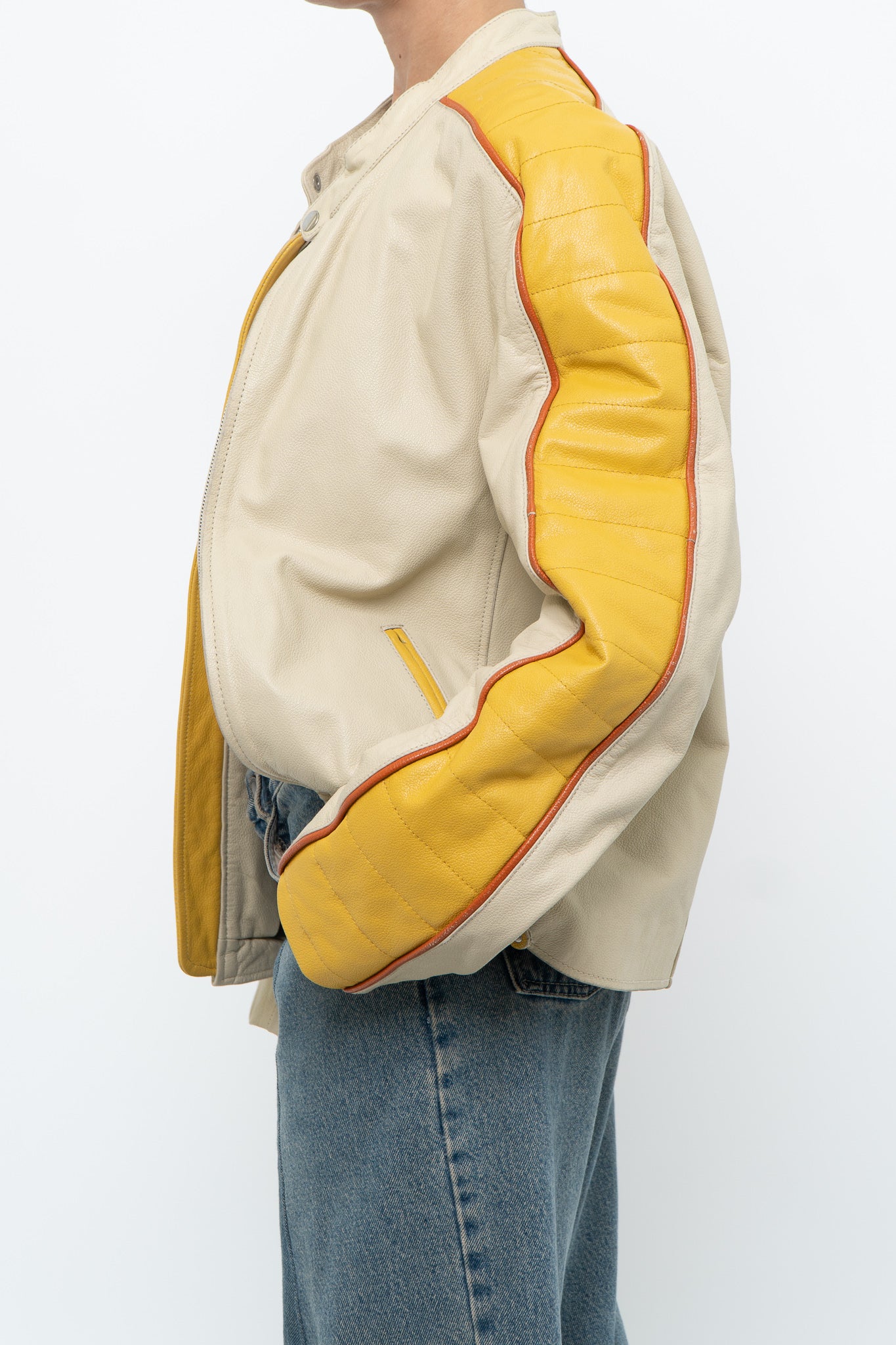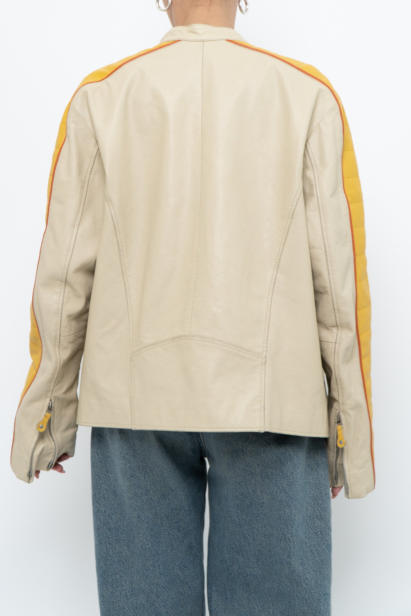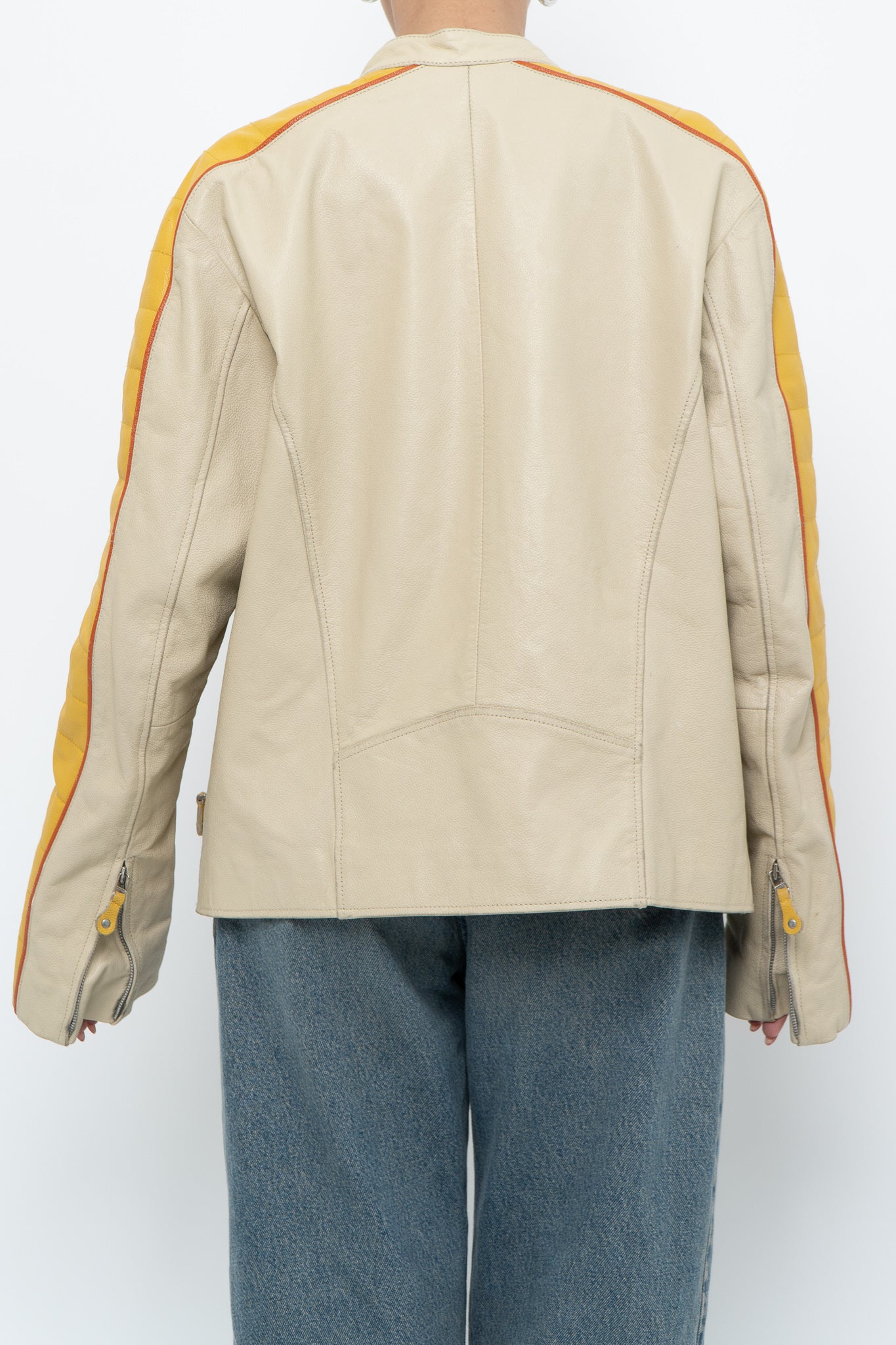 Condition: perfect wear, one pocket zipper stuck halfway / Marked M suits S-L / Genuine Leather / Pit to pit 20" Length 25"