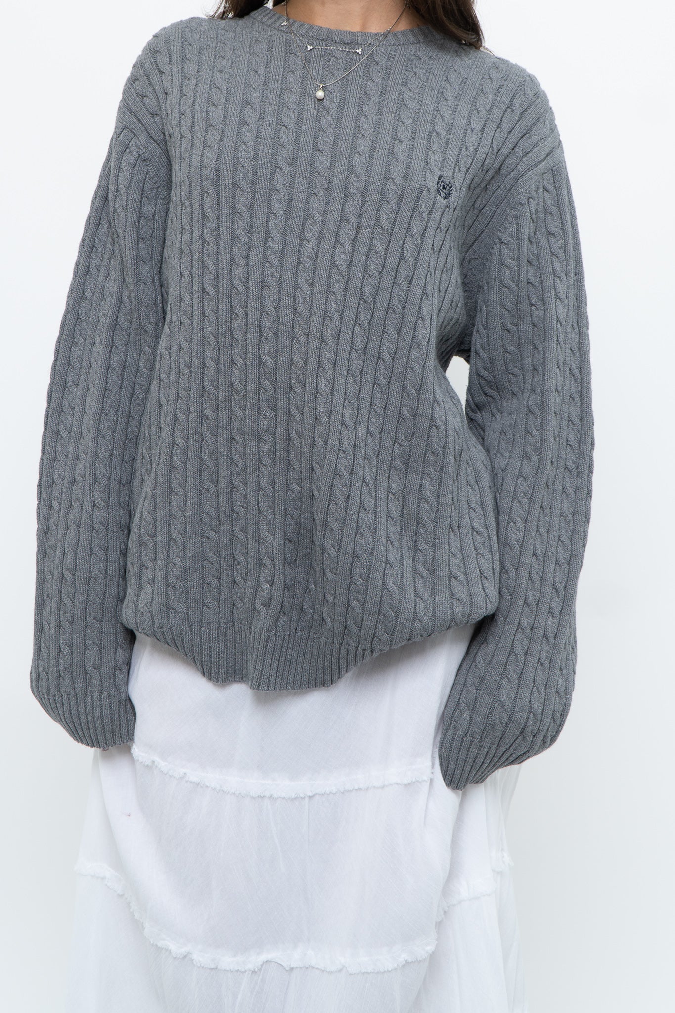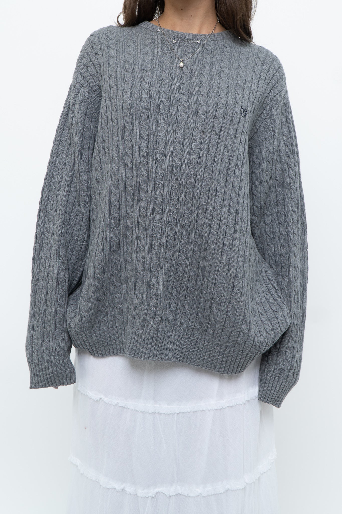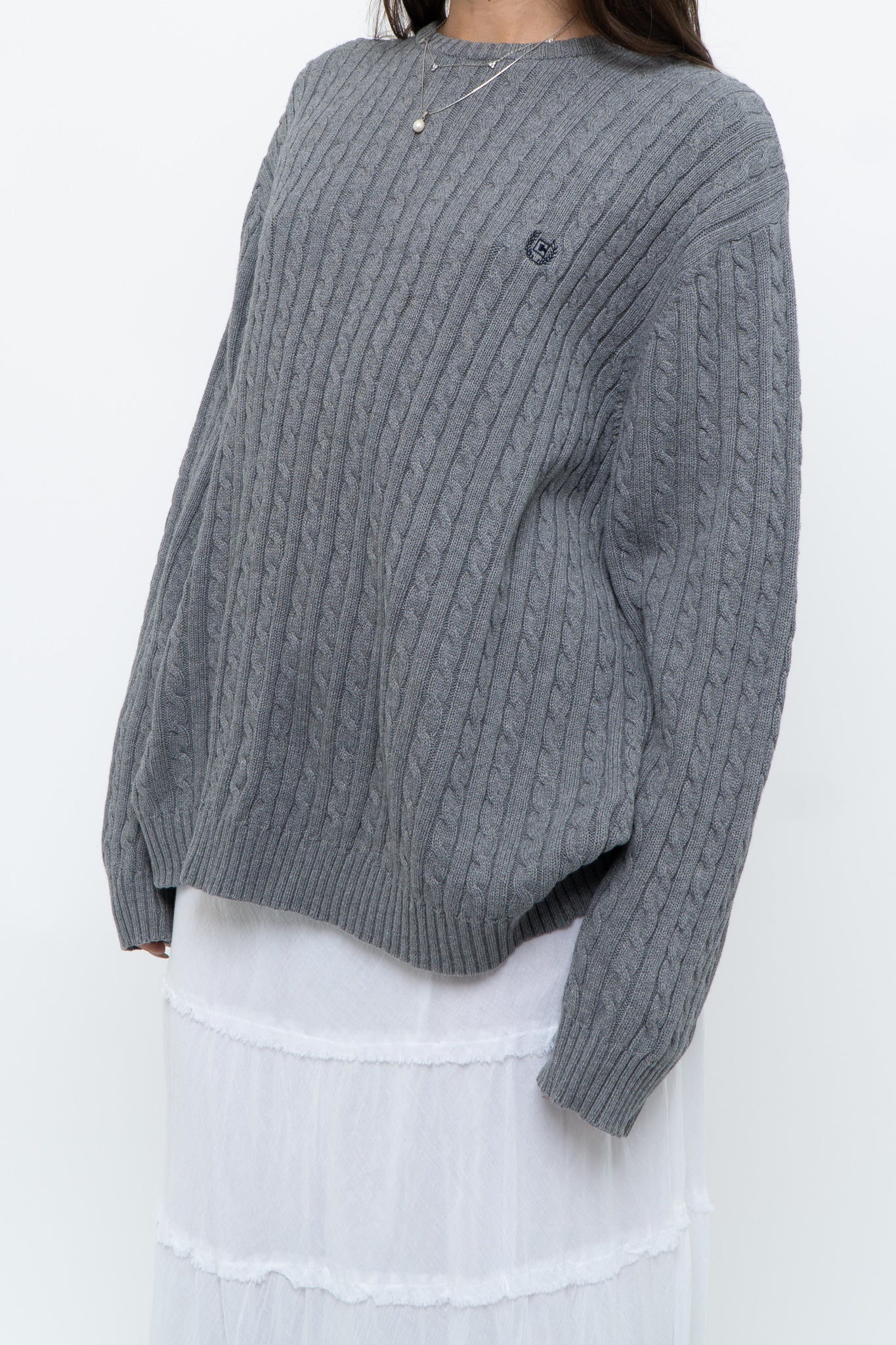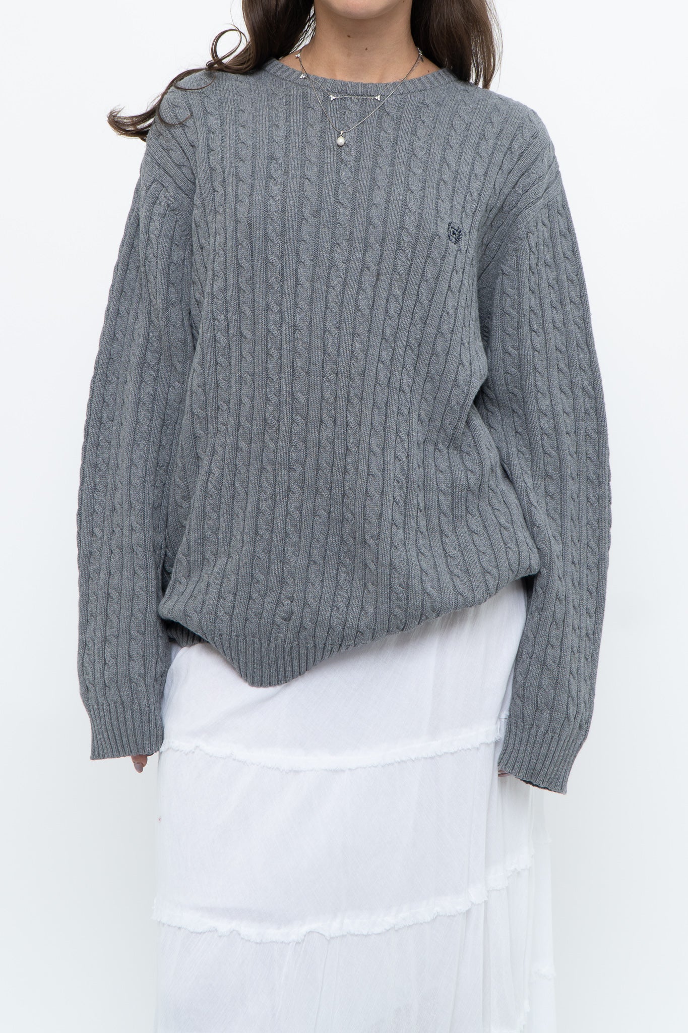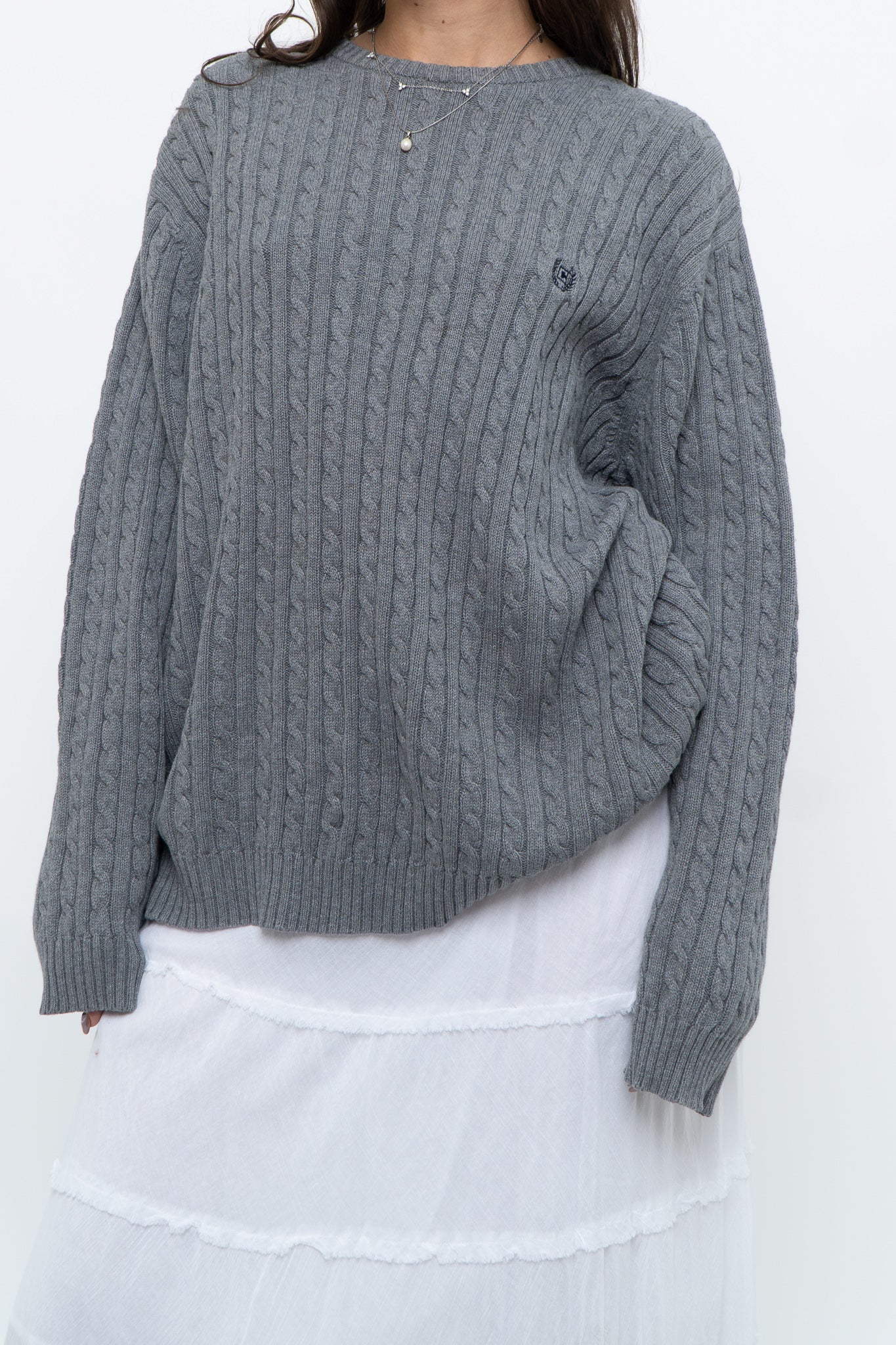 Vintage x CHAPS Grey Cableknit Cotton Sweater (XS-L)