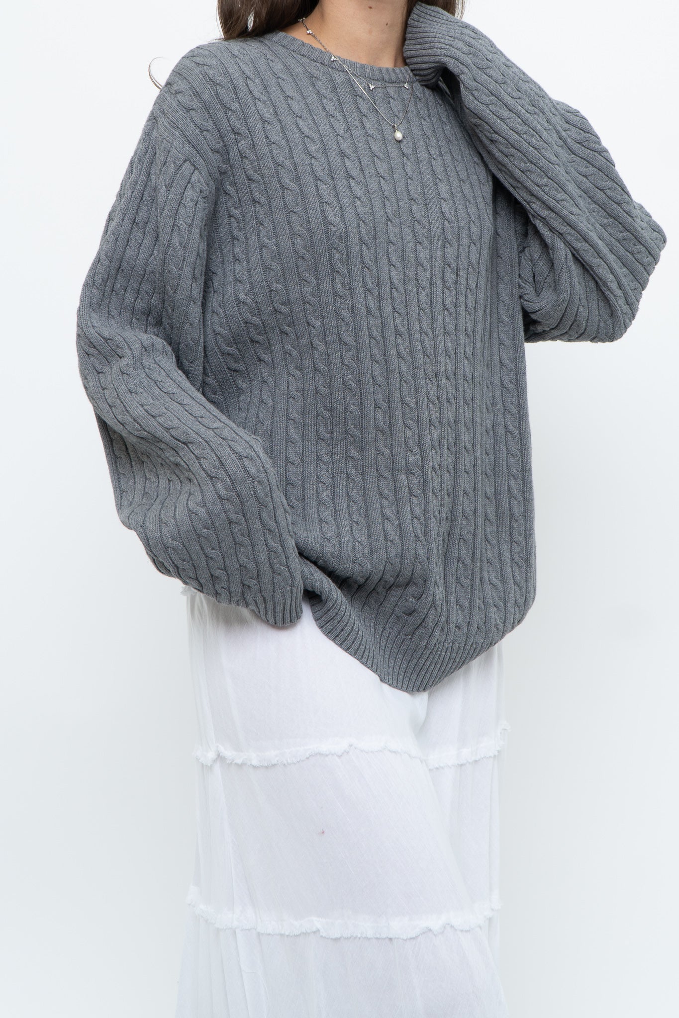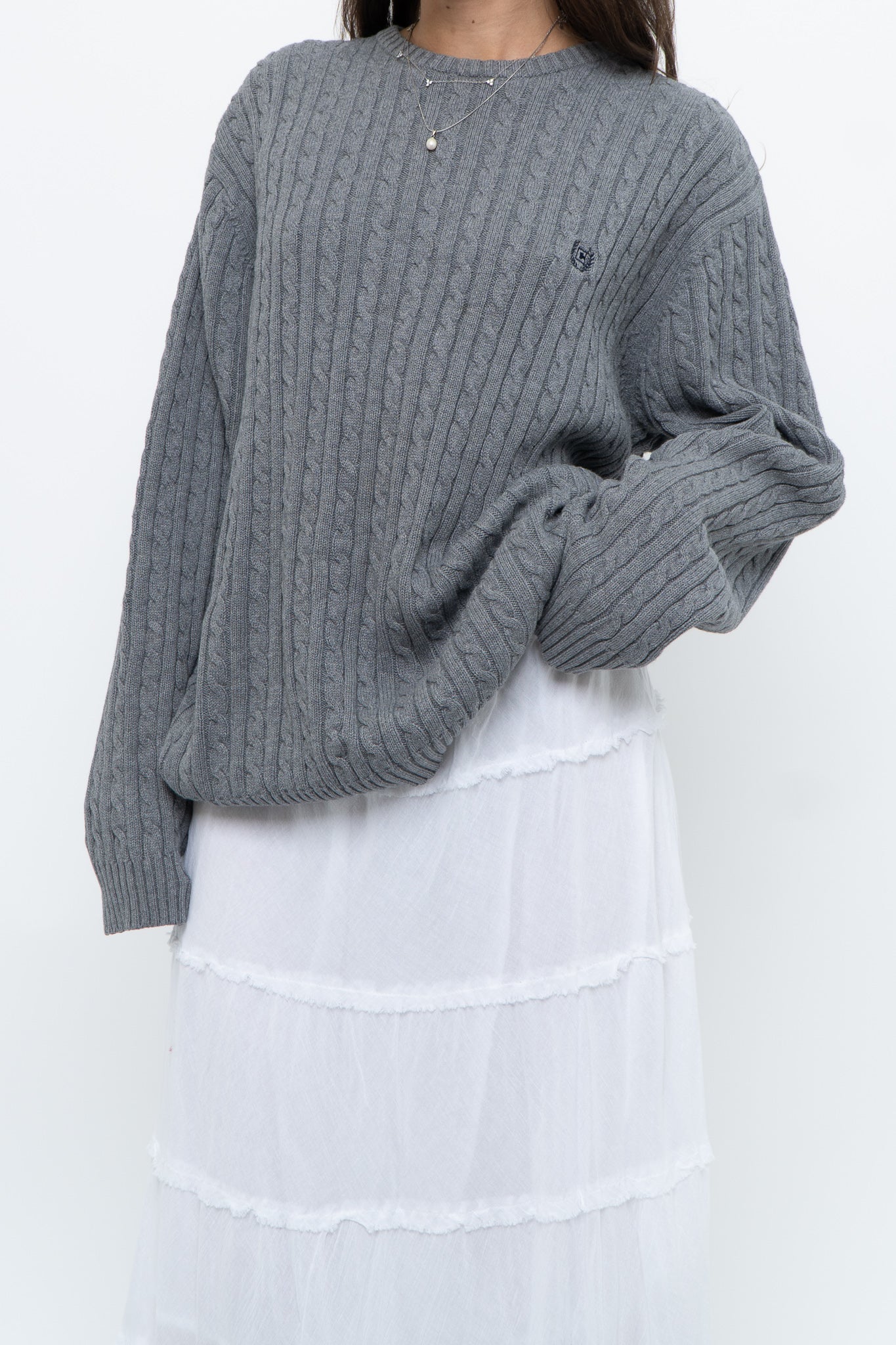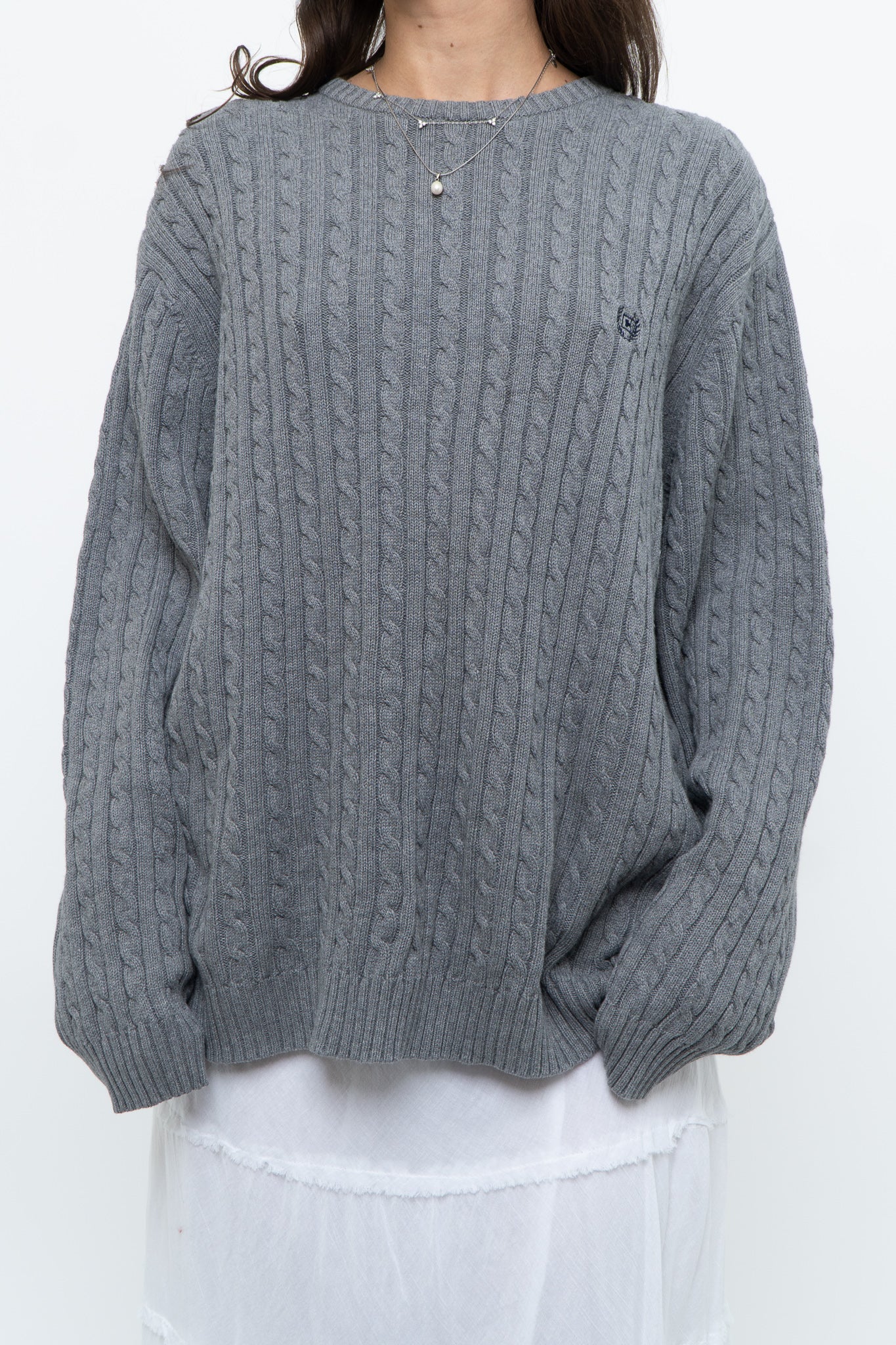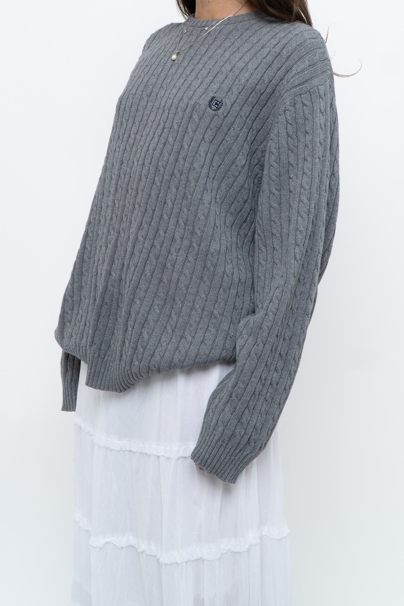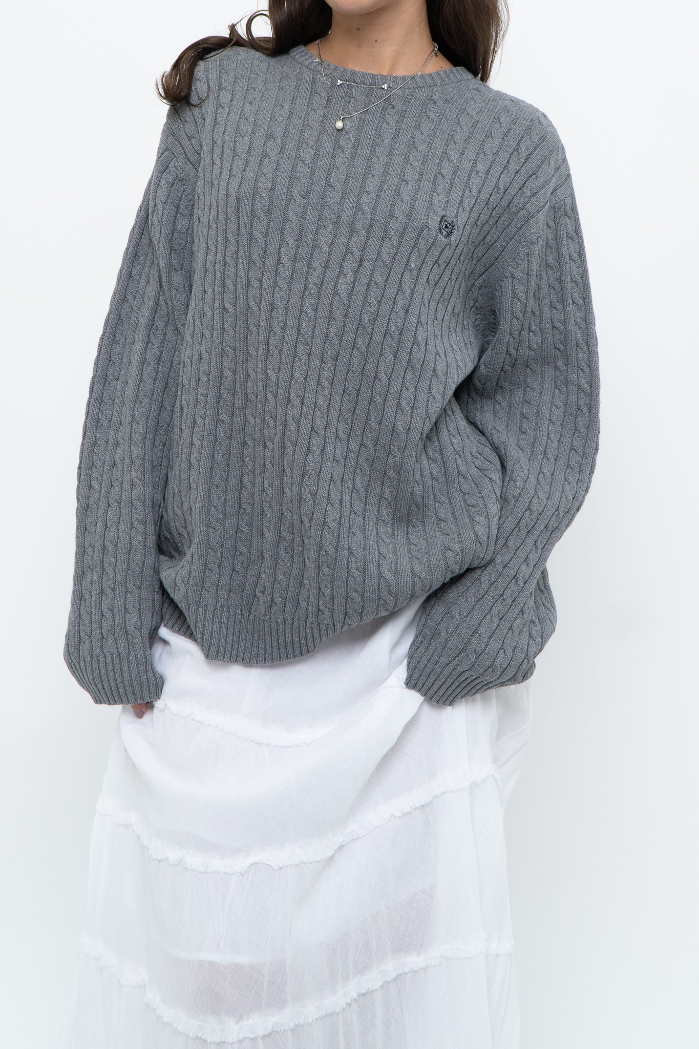 Vintage x CHAPS Grey Cableknit Cotton Sweater (XS-L)